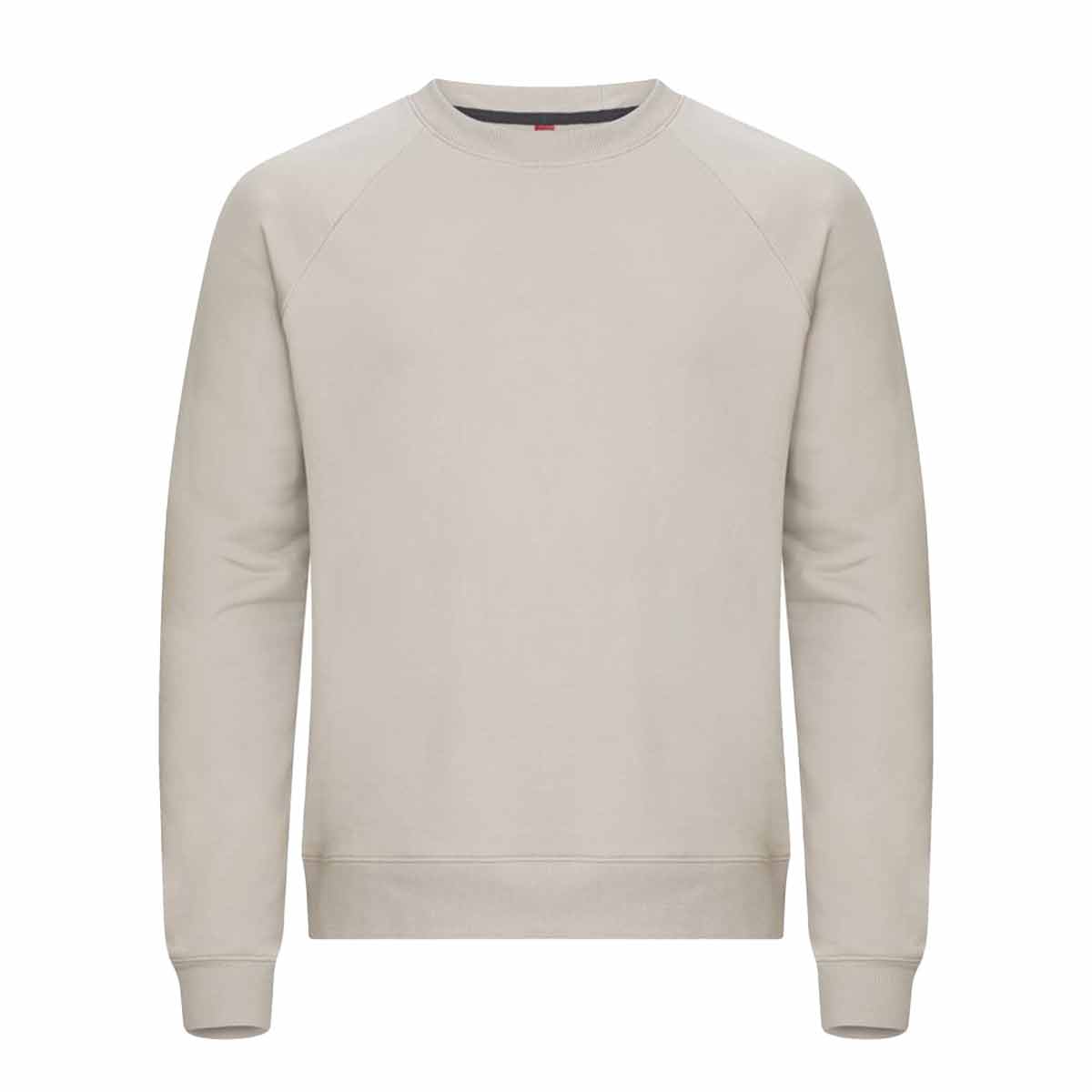 Raglan-hihat tuovat liikkumisen vapautta ja tekevät mallista käytännöllisen. Kaulus, hihansuut ja helma on viimeistelty joustavalla 2×2 rib-neuloksella, joka antaa hyvän istuvuuden ja kestävyyden. Painoltaan noin 280 g/m² kangas on sopivan jämäkkä, jotta se tuntuu laadukkaalta, mutta pysyy silti mukavan kevyenä ja hengittävänä jokapäiväisessä käytössä.