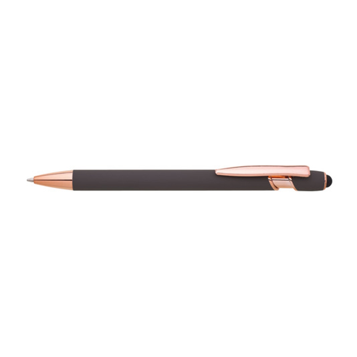 Ella Soft on elegantti metallinen kuulakärkikynä, jossa on miellyttävä soft-touch-pinta ja laadukas viimeistely. Tyylikkäät metalliset yksityiskohdat ja sileä kirjoitustuntuma tekevät siitä varman valinnan yrityksen mainoskynäksi. Kynään voidaan toteuttaa tarkka ja näyttävä laserkaiverrus, joka korostaa omaa logoa modernilla tavalla.